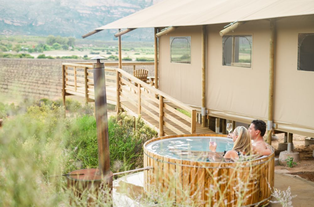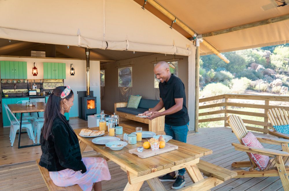 Known for its dramatic wind-carved sandstone formations, vibrant springtime flowers, and ancient rock art of great archaeological significance, the rugged Cederberg landscape is a place of unique and diverse natural beauty. AfriCamps at de Pakhuys is located in the heart of the Rocklands in the northernmost part of the Cederberg Wilderness Area, 26 km from Clanwilliam en route to the historic Wuperthal village. Rocklands is an alluring and mysterious area covered in dramatic boulders and crags. These ancient rock formations offer some of the best bouldering and climbing sites in the world, attracting bouldering communities from across the globe, and de Pakhuys Guest Farm, their favourite place to retreat while they take on the different bouldering spots around the area. Multiple hiking trails meander between boulders across the property, with welcome sights like rock pools, San rock art, and even a waterfall along the way. If you’re lucky, you might even spot the elusive Verreaux’s eagle nesting high against the cliffs. A scenic drive to the top section of the farm (accessible only with a 4×4 vehicle) takes you to 60 hectares of rooibos tea lands, 260 hectares of unspoiled fynbos gorges blooming with wildflowers in season, and a rock cave – the perfect spot for a picnic. Take a more laidback approach and spend the day at the camp swimming in the farm dam, fishing for bass in the neighbouring farm dam, or sipping on some fine wines at the winery next door. Please contact our Reservations Department for availability and rates.