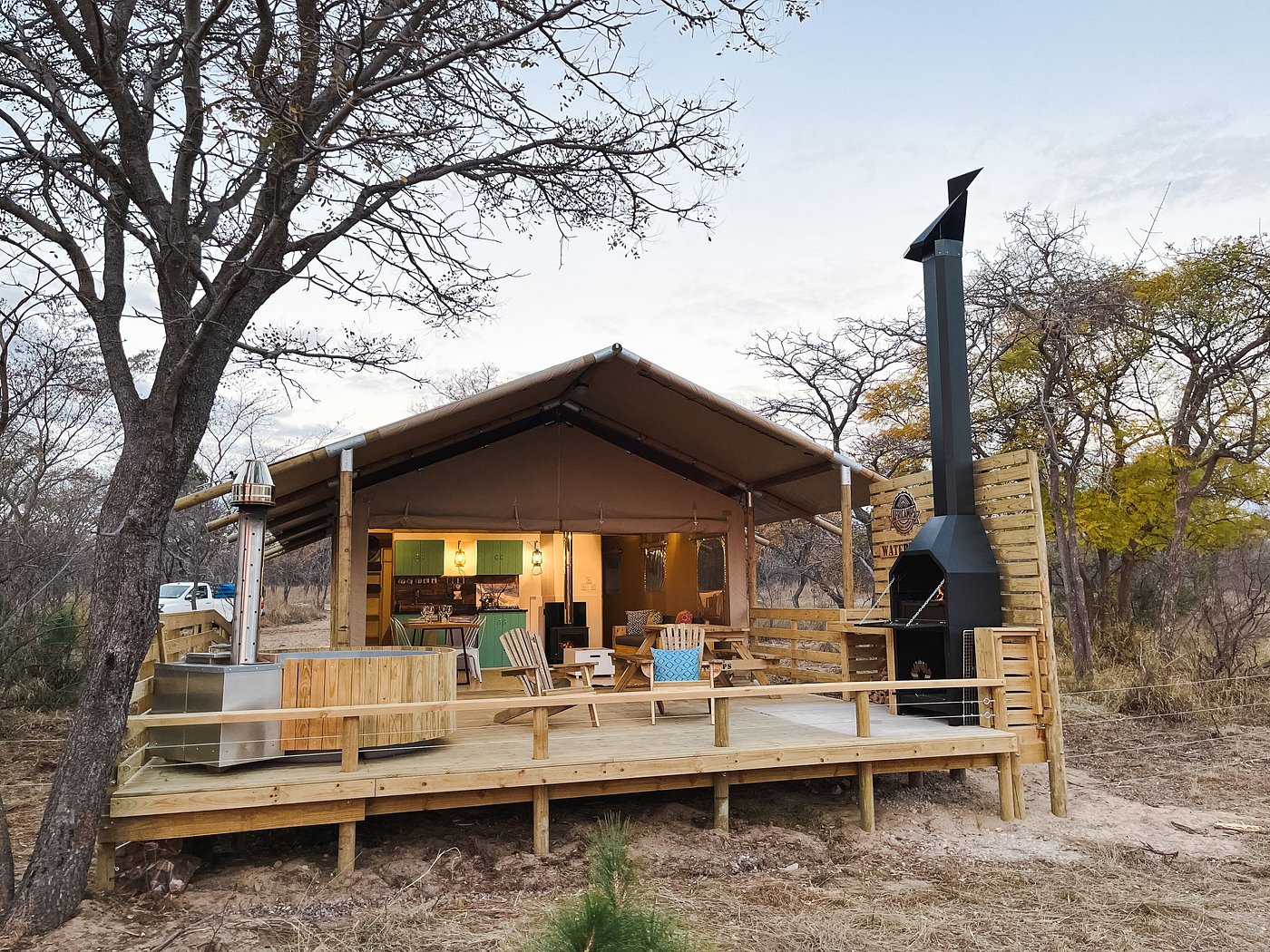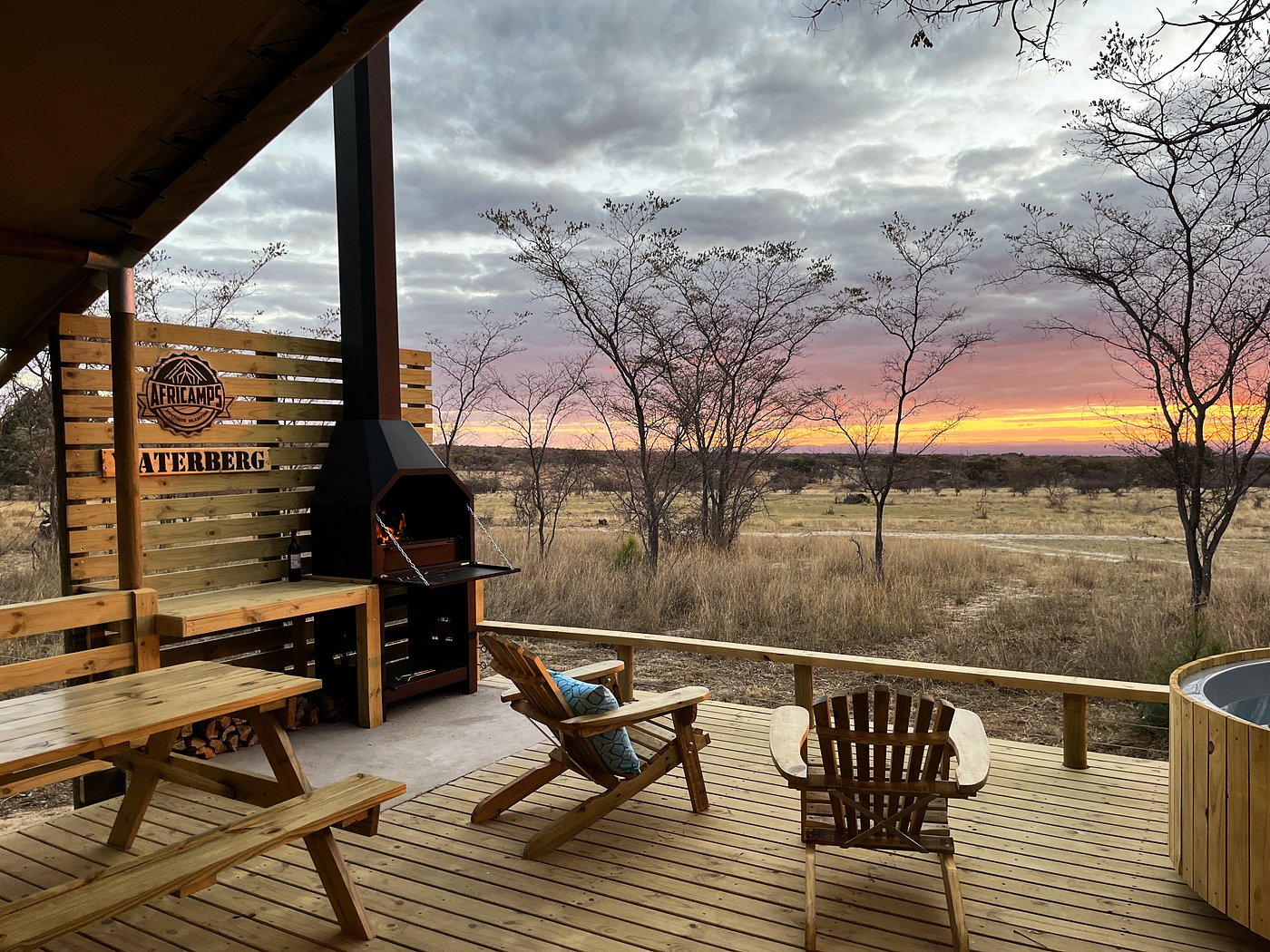 AFRICAMPS WATERBERG, LIMPOPO An African Savannah glamping experience Located in the heart of the Waterberg plateau in Limpopo, a tranquil bushveld safari awaits at AfriCamps Waterberg. Whether you like to relax and recharge, or a jam-packed adventure is more your speed, here you’re always surrounded by wildlife and tranquil bush scenery. The camp is only a 2.5-hour drive from Pretoria, 30 km northeast of Vaalwater, and invites you to experience the unspoiled wilderness of the Waterberg Biosphere. Surrounded by 2,500-hectare game reserve encompassing wetlands, open fields, bushy areas and a rocky ridge, the family-friendly AfriCamps Waterberg offers various exciting game viewing opportunities in a malaria-free environment. Highlights on the reserve include horseback game viewing safaris, guided game drives, hiking, astronomy shows (hosted by camp owner, Dr. Phillip Calcott), and birdwatching. Guests can encounter giraffe, zebra, eland, wildebeest, roan, tsessebe, sable, buffalo, kudu, impala, blesbok, waterbuck and ostrich on the property. There is abundant birdlife, particularly close to the dams and wetlands. A ‘’Culture Tour’’ of a nearby African village and a ‘’Step into the Past ‘’Tour that includes a visit to the historical Davidson House and the Herbert Baker-designed St John’s Church nearby is also on offer. So where exactly is the Waterberg? The Waterberg plateau, a very special part of South Africa, is a mountainous massif of approximately 654,033 hectares in north Limpopo Province, forming a sort of natural ‘’castle’’ or inverted saucer with ramparts of rock formations around the edges. At the foothills of this castle are many towns: Modimolle, Mookgophong, Mokopane, Lephalale, Thabazimbi and Bela-Bela. The portals to the massif that forms the castle are all beautiful passes: Sandrivierspoort, Bakker’s Pass, Bokpoort, the Kloof Pass, the Beauty Road and other lesser-known access routes. There is archaeological evidence that the San and, much later, the Pedi, retreated to this haven in times of danger. En route to AfriCamps Waterberg, you will pass Vaalwater, the only town on the plateau. Please contact our Reservations Department for availability and rates.