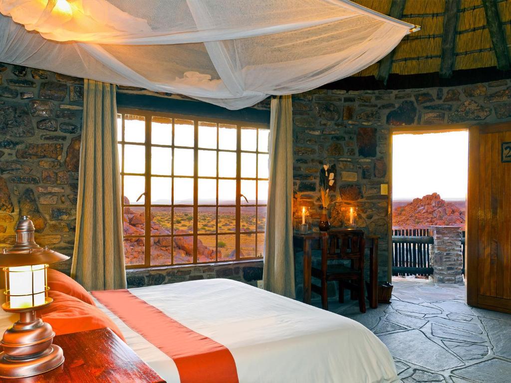 Featuring mountain views, Gondwana Canyon Lodge in Kanebis features accommodation, an outdoor swimming pool, a garden, a terrace, a restaurant and a bar. Complimentary WiFi is available. There is a private bathroom with shower and free toiletries in each unit, along with a hairdryer. The daily breakfast offers buffet, continental or Full English/Irish options. Ai-Ais National Park is 14 km from the lodge. Rates valid until 31 October 2026 Type Normal Rate Our Rate 01 November 2024 – 31 October 2025 Double Room N$2705 N$2164 Single Room N$3381 N$2705 01 November 2025 – 31 October 2026 Double Room N$2976 N$2381 Single Room N$3719 N$2976 Above quoted rates are per person per night including breakfast, VAT and bed levy.