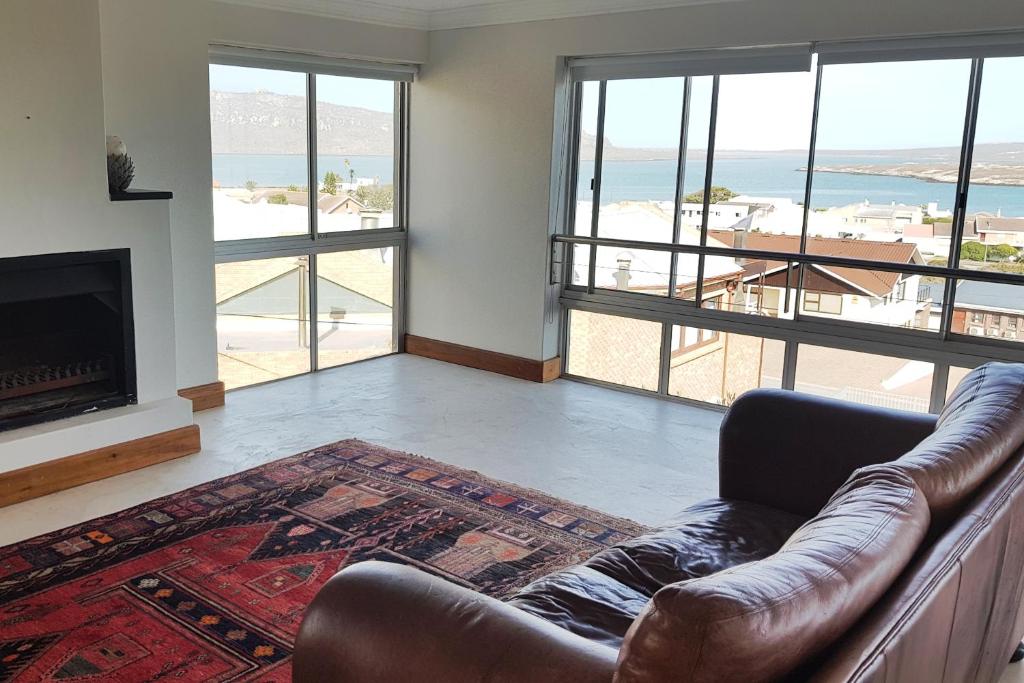 Casa Del Palmera is situated in Central Langebaan. It is a brisk walk from almost everything, including central town with all its restaurants, shops and the beach. This property is build on several levels. The flatlet consists of two en-suite bedrooms which open onto the garden and swimming pool. There are also two en-suite bedrooms on the ground level. The kitchen, lounge and entrance are all on the ground level. The main en-suite bedroom and a informal lounge is situated on the first floor, and there is also a fully equipped modern kitchen on this floor. Both the ground and first floors have amazing views of Langebaan and the Lagoon. The house is ideal for a large group or family. The house is also equipped with both indoor and outdoor built in braai areas. The large double garage is available for guests to use. Casa Del Palmera is equipped for 12 people and is rented out on a self-catering basis. The house is equipped with Premium Bouquet DStv and is furnished for comfort. Sorry no pets allowed! Please contact our Reservations Department for availability and rates.