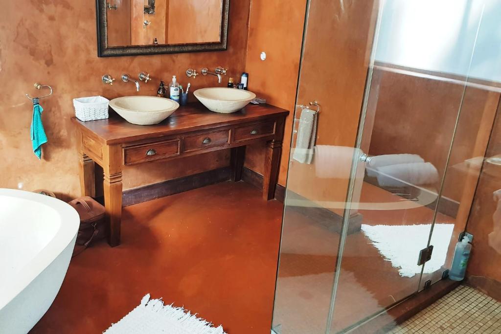 This property is build on several levels. The flatlet consists of two en-suite bedrooms which open onto the garden and swimming pool. There are also two en-suite bedrooms on the ground level.