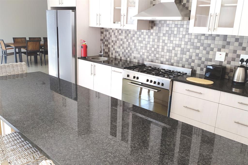 Fynbossie is a self-catering home located in a residential area of Langebaan. The holiday home is the ideal base from which to explore the town’s attractions and facilities. This fully furnished house can accommodate 8 guests and consists of 4 bedrooms and 2 bathrooms. The main bedroom is furnished with a queen-size bed and features an en-suite bathroom fitted with a shower and corner bath. The second bedroom is equipped with a double bed, and the third and fourth bedrooms each have 2 single beds; the three rooms share the second bathroom with a shower and bath. The home features a well-equipped kitchen that contains the necessary appliances to prepare and cook meals, including a washing machine and a tumble-dryer. The open-plan living area boasts an indoor braai facility, sofas to relax on, a dining table, and a TV with selected DStv channels. The living area leads outside to the yard, which also offers an outdoor braai area. In addition, the home boasts Wi-Fi, off-street parking and a double garage, as well as an alarm system. Please contact our Reservations Department for availability and rates.