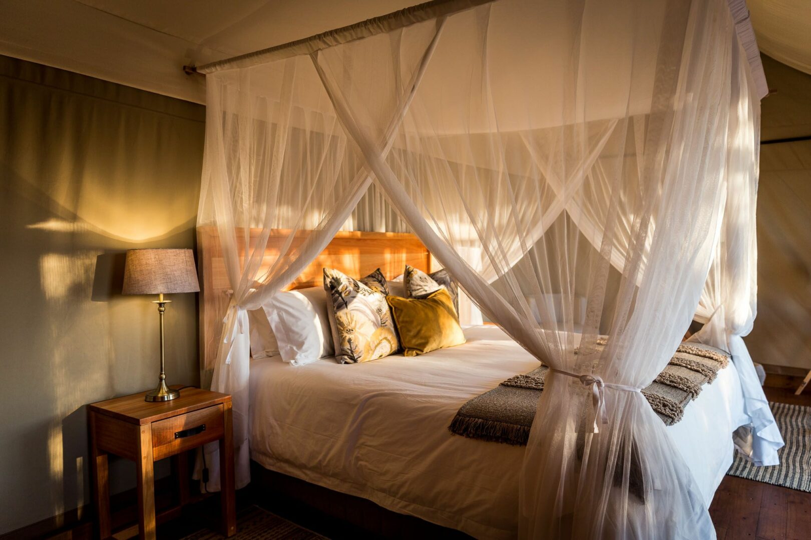 In total, there are 10 tented suites each with a private viewing deck with views of the wilderness. The tranquil main area of the lodge houses a swimming pool, dining and lounge area, and small relaxation enclaves that effortlessly flow through the pool area. That’s not enough, there’s a small spa treatment room, private lounge area, and a second pool section complete with a chill area, sun loungers and the quintessential pool bar. The charming Mankwe Tented Retreat is situated in a private concession just under two hours from the famed Moremi Game Reserve. The retreat is located on the eastern edge of the Okavango Delta, a renowned World Heritage Site in Botswana. Khwai : 28 km (1 hour) Savuti (Chobe National Park): 90 kms (4 hours) Maun : 93 kms (1hr 50mins) South Gate: 60 km (1hr 30 mins) North Gate : 45 kms (1hr 40 mins) The border of the Moremi Game Reserve lies a stone’s throw to the west of Mankwe, while Chobe National Park is slightly north, and Maun is only two hours south, by road. The lodge is nestled in a prime location in its own 365 000 hectare concession. This is a prestigious territory in the wild wonderland of Botswana, where the lack of fences allows for free-roaming wildlife, resident lions, an abundance of elephants, and incomprehensible room to explore.