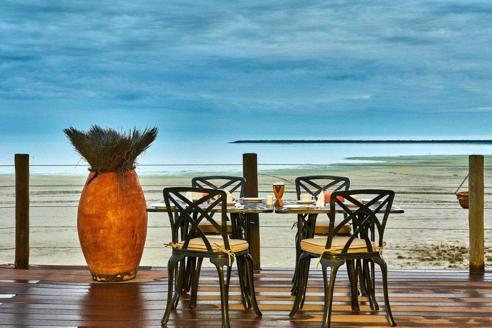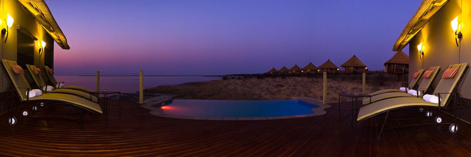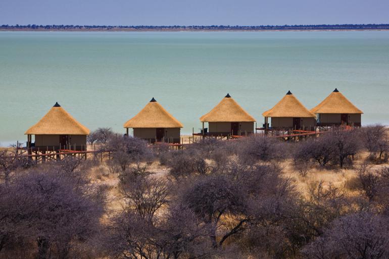 Nestled on the rim of the pan on a secluded peninsula, Onkoshi Resort is a low impact, environmentally friendly establishment with only 15 units (30 beds), which guarantees a truly personal and exclusive experience. The location is entirely out of view of current tourist routes, and all other developments in the area, and thus offers a pristine, tranquil and unique experience. Onkoshi Resort offers superb vistas over the Etosha pan, with its shimmering mirages during the hot days; dramatic sunset and sunrise textures and colours; sense of isolation and space; clear night skies; and the sights, smells and sounds of untamed and unadulterated Africa. All rooms are built on elevated wooden decks, with thatched roofs, canvas walls and large, wooden-framed retractable doors allowing spectacular panoramic views. Rooms are tastefully equipped with locally crafted fittings and furnishings, using a blend of metal and wood combined with natural fabrics to create a natural and ethnic ambiance. Each chalet has two ¾ beds, except in the honeymoon chalet where a king-size bed is provided. Rate valid until 31 October 2026 Type Normal Rate Our Rate Normal Rate Our Rate November 2025 – 30 June 2026 Sharing Single Chalet – 2 Pax N$3180 N$2862 N$3490 N$3141 Honeymoon Chalet N$3560 N$3204 N$3880 N$3492 July 2026 – 31 October 2026 Chalet – 2 Pax N$4320 N$3888 N$4630 N$4167 Honeymoon Chalet N$5100 N$4590 N$5400 N$4860 Above quoted rates are per person per night.