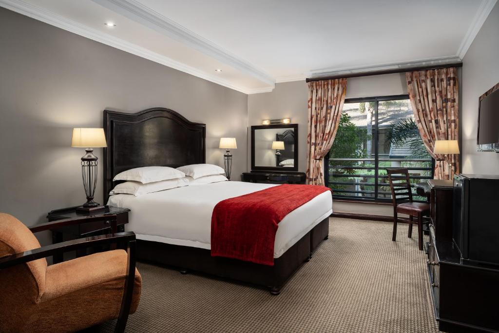 Offering an outdoor pool, the 4-star Premier Hotel Pretoria is located only 1.2 km from the famous Union Buildings. It has a dining terrace overlooking the hotel garden. The stylishly decorated rooms feature warm tones, soft lighting and elegant furniture. Each room is air conditioned and includes a private bathroom with the option of a shower or bathtub. The Ambassador Restaurant serves breakfast, lunch and dinner in a welcoming ambience. Meals are served buffet style with the option of à la carte. The Embassy Bar serves light meals and an extensive array of spirits, liquors and cocktails. Rate valid Until February 2027 Type Our Rate Our Rate Our Rate Our Rate March 2025 – February 2026 March 2026 – February 2027 Single Sharing Single Sharing Standard Room R1330 R780 R1455 R850 Executive Room R1430 R830 R1655 R950 Suite R1830 R1030 R1955 R1100 Above quoted rates are per person per night including breakfast. PLEASE CONTACT RESERVATIONS FOR PEAK DATES RATES.