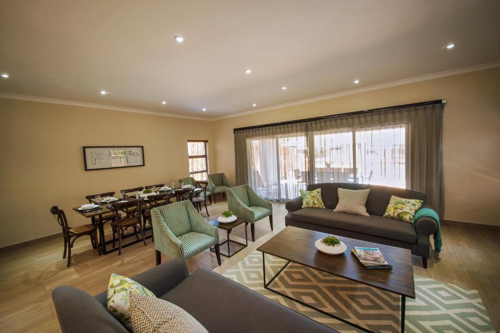 Located in Hartbeespoort, 40 km from Eagle Canyon Country Club, Seasons Golf, Leisure, Spa provides accommodation with an outdoor swimming pool, free private parking, a garden and a terrace. With free WiFi, this 4-star resort has a restaurant and a bar. The resort features family rooms. At the resort, the rooms have a wardrobe, bed linen and a patio with a garden view. Every room comes with a kettle, while some rooms here will provide you with a kitchen with a fridge, an oven and a microwave. At Seasons Golf, Leisure, Spa, each room comes with a flat-screen TV with satellite channels. The accommodation offers a children’s playground. Guests at Seasons Golf, Leisure, Spa will be able to enjoy activities in and around Hartbeespoort, like hiking. SPECIAL RATES APPLICABLE TO BOOKINGS MADE WITHIN TWO WEEKS NOTICE OF OCCUPATION DATE NOT APPLICABLE DURING PEAK SEASON AND SCHOOL HOLIDAYS SPECIAL UNITS SUBJECT TO AVAILABILITY OUR RATES Unit Size Full Week Mid Week Weekend 2 FROM R5800 FROM R4000 FROM R4500 4 FROM R5800 FROM R4000 FROM R4500 6 FROM R5800 FROM R4000 FROM R4500 FOR BOOKINGS MADE FURTHER IN ADVANCE, DISCOUNTED RATES AVAILABLE. Please enquire for discounted rates, ranging between 20% – 50% depending on unit size, season and availability.