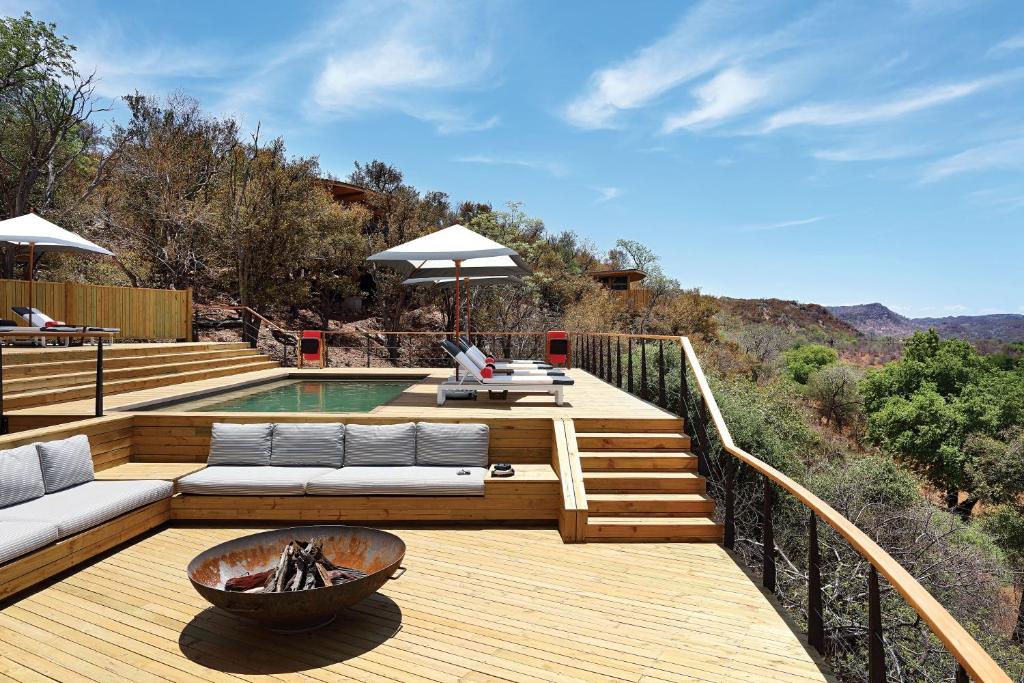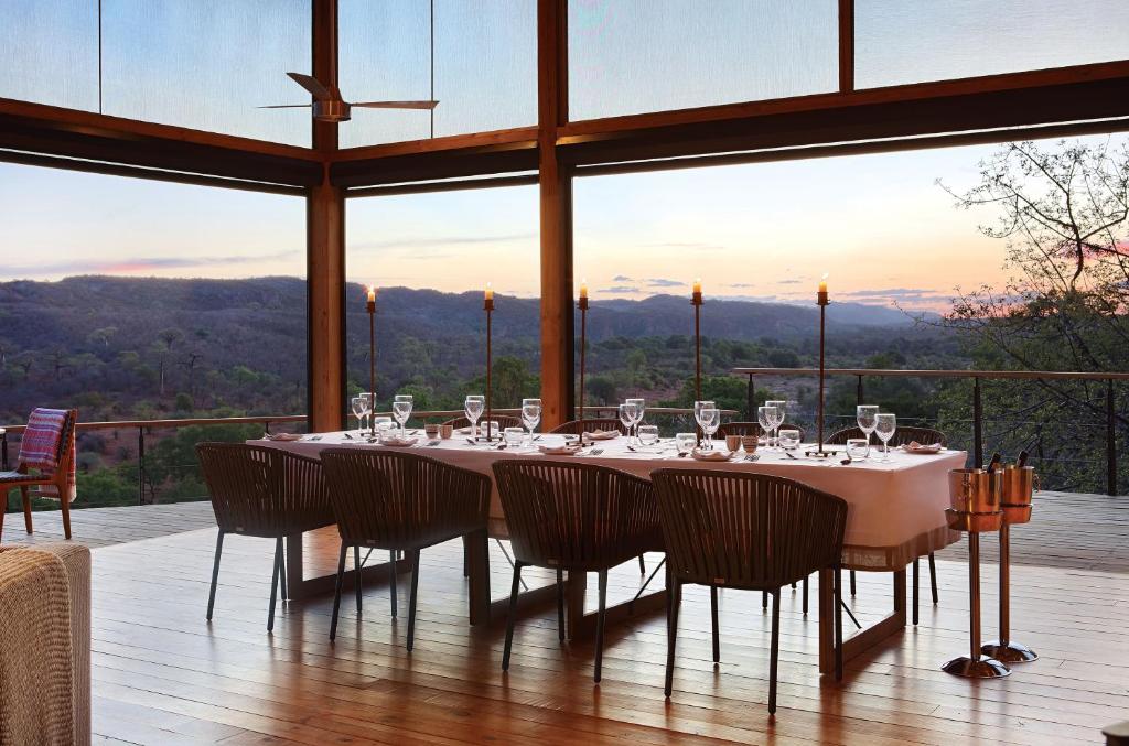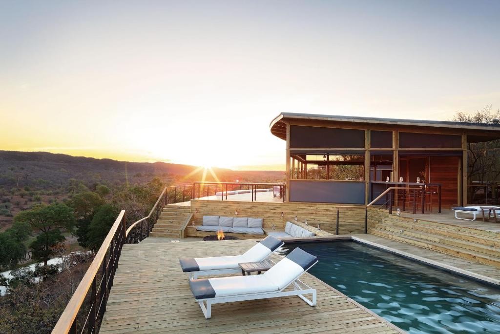 The Outpost accommodates 24 guests in 12 open plan, en-suite luxury spaces cantilevered on a hill overlooking the Luvuvhu River. The private, free standing spaces are inter-connected to each other and the central lodge area by 500 metres of Zimbabwean teak walkway.