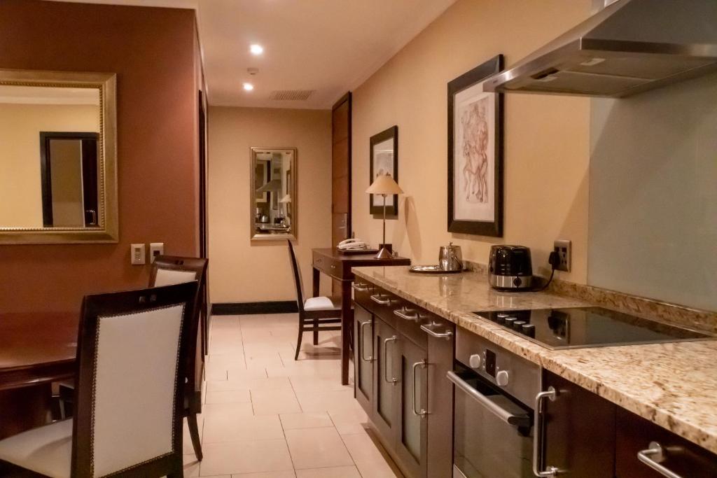 Raphael Penthouse Suites offers Manhattan-style living in the heart of Sandton. The apartments feature one or two bedrooms, with fully equipped kitchens and all the facilities and services one has come to expect from a 5 Star property. Raphael Penthouse Suites overlooks the cosmopolitan piazza of Nelson Mandela Square and Sandton City, and are in close proximity to the Michelangelo Towers Mall and Legacy Corner Mall, providing guests with access to a variety of restaurants, shops and boutiques, as well as cinemas and theatres in the shopping centres, all within walking distance of the hotel. The main entrance is on Fifth Street, with two dedicated lifts to the reception level from Nelson Mandela Square. Please contact our Reservations Department for availability and rates.